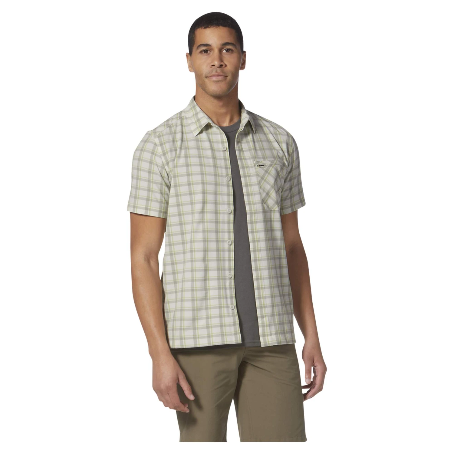 Der Elasthan-Anteil sorgt für den Stretch des Materials – dadurch hast du ein sehr angenehmes Tragegefühl und alle Bewegungsfreiheit, die du bei deinen Unternehmungen so brauchst. Das schnelltrocknende Material mit HeiQ Stain Away ausgerüstet. Flecken lassen sich dank dieser Technologie sehr einfach wieder herauswaschen. Und da das Amp Lite Plaid S/S zudem schnelltrocknend und knitterarm ist, kannst du es auch schnell wieder anziehen.