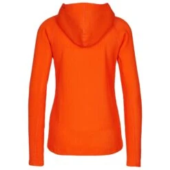 Auf der Innenseite des Wollpullovers befindet sich eine grobschlingige Frotteestruktur aus geruchsneutraler Merinowolle, vermischt mit etwas Kunstfaser. Diese Konstruktion sorgt für eine hervorragende Isolation, da die Wärme gut in der Schlingenkonstruktion gespeichert werden kann. Außerdem kann der Pullover durch den Kunstfaseranteil und die feuchtigkleitsleitenden Eigenschaften der Merinowolle mit einem sehr guten Feuchtigkeitstransport und schnelltrocknenden Eigenschaften aufwarten. Die Außenseite besteht aus glattem Feinstrick mit höherem Kunstfaseranteil.
